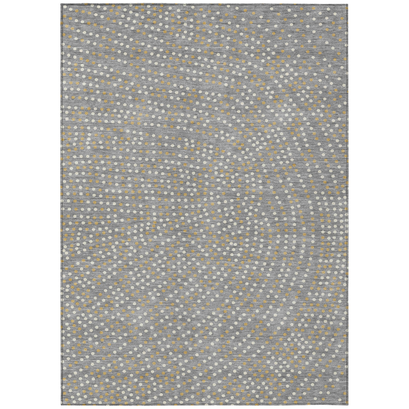 5' X 8' Gray Gold And Ivory Polka Dot Washable Indoor Outdoor Area Rug