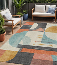 5' X 8' Gray Gold Salmon And Ivory Geometric Washable Indoor Outdoor Area Rug