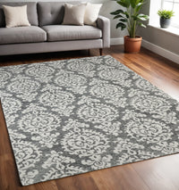 5' X 8' Gray Ivory And Black Floral Hand Tufted Area Rug