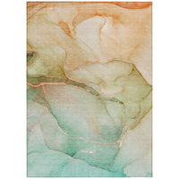 5' X 8' Green And Pink Abstract Washable Non Skid Indoor Outdoor Area Rug