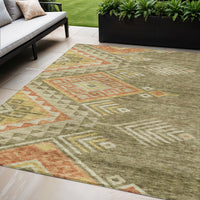 5' X 8' Green And Terra Cotta Southwestern Washable Indoor Outdoor Area Rug