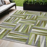 5' X 8' Green Gray And Ivory Geometric Washable Indoor Outdoor Area Rug
