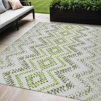 5' X 8' Green Ivory And Gray Geometric Washable Indoor Outdoor Area Rug