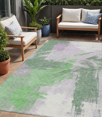 5' X 8' Green Lavender And Ivory Abstract Washable Indoor Outdoor Area Rug