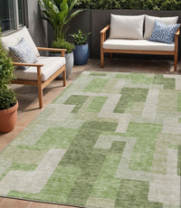 5' X 8' Green Sage And Beige Geometric Washable Indoor Outdoor Area Rug