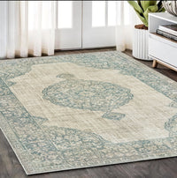 This 5-foot x 8-foot ivory oriental power loom area rug, is a great way to add warmth to a room. This rectangle shaped rug features a oriental design in ivory to give it visual interest. A classic shape marries with good looking design for your space the coloring of this rug adds a delightfully neutral tone to your home and will easily match with most any decor. Ideal for spaces with kids and pets, this rug is stain resistant to help repel stains and spilled liquids. Area rugs help to give warmth and sense of home to your space. 62.99-inch H x 90.55-inch W x 0.32-inch D