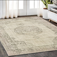 Add some artistry to your room with this 5-foot x 8-foot ivory oriental power loom area rug. This rectangle shaped rug features a oriental design in ivory to give it visual interest. A classic shape marries with good looking design for your space the coloring of this rug adds a delightfully neutral tone to your home and will easily match with most any decor. Ideal for spaces with kids and pets, this rug is stain resistant to help repel stains and spilled liquids. Area rugs help to give warmth and sense of home to your space. 62.99-inch H x 90.55-inch W x 0.32-inch D