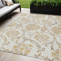 5' X 8' Ivory Beige And Gold Floral Washable Indoor Outdoor Area Rug