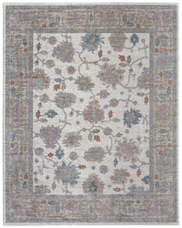 5' X 8' Ivory Brown And Blue Floral Distressed Area Rug