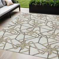 5' X 8' Ivory Charcoal And Gold Geometric Washable Indoor Outdoor Area Rug