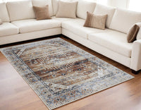 5' X 8' Ivory Red and Blue Abstract Power Loom Worn Faded Area Rug