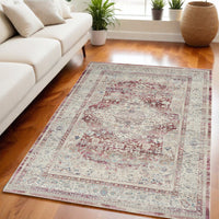 5' X 8' Ivory Red And Brown Floral Distressed Area Rug