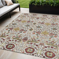 5' X 8' Ivory Red And Green Floral Washable Indoor Outdoor Area Rug