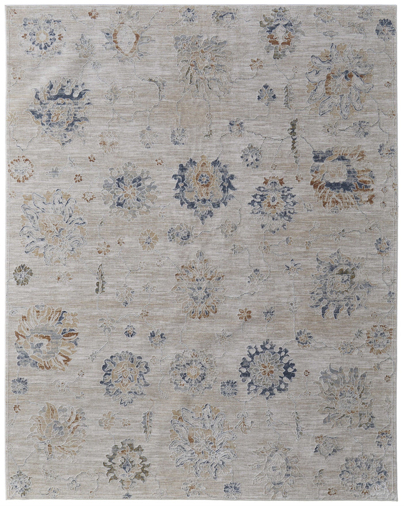 Set an inviting tone in your space with this 5-foot x 8-foot ivory taupe and blue floral power loom worn faded area rug with fringe. This rectangle shaped rug features a floral design that will add a functional and decorative accent to your space. Ideal for spaces with kids and pets, this rug is stain resistant to help repel dirt and spilled liquids. Tassel ends bring a timeless and fashionable look to your interior. This larger sized rug is ideal to create a focal point or statement piece in your room. 60-inch h x 90-inch w x 0.43-inch d