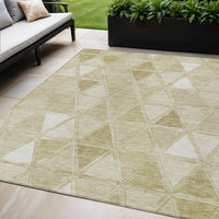 5' X 8' Khaki Beige And Tan Geometric Washable Indoor Outdoor Area Rug