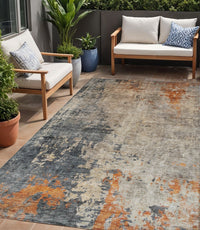 5' X 8' Khaki Gray And Copper Abstract Washable Indoor Outdoor Area Rug