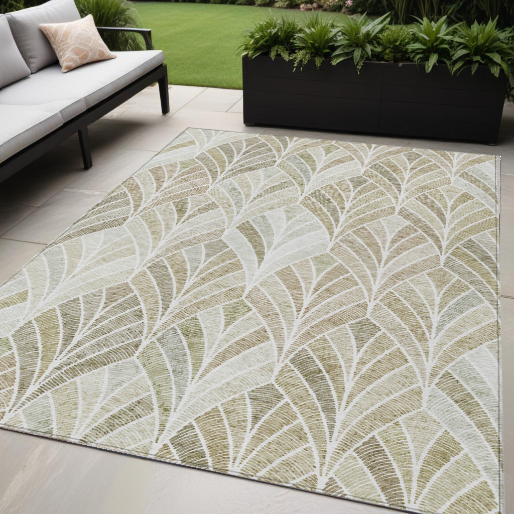5' X 8' Khaki Tan And Beige Geometric Washable Indoor Outdoor Area Rug