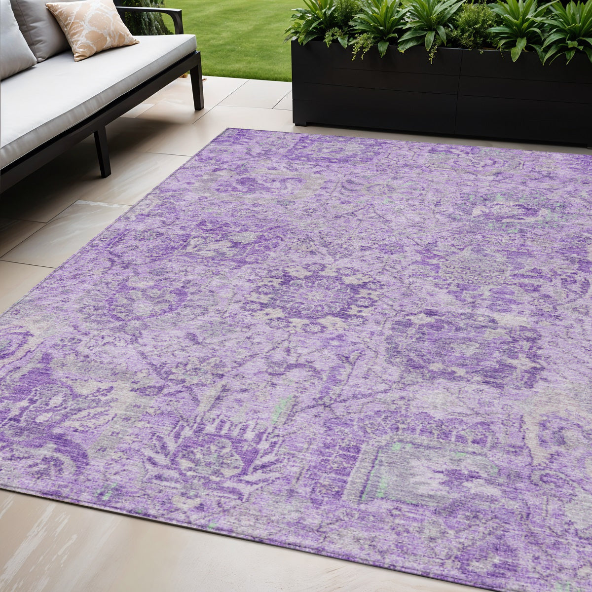 This 5-foot x 8-foot lavender and gray damask washable indoor outdoor area rug, is a great way to add warmth to a room. This rectangle shaped rug features a damask design that will work well both indoors or out. A classic shape marries with good looking design for your living room, hall, bedroom, porch, patio, or poolside. Ideal for outdoor spaces or high traffic areas with kids and pets, this rug is made from heavy duty polyester that is stain resistant to help repel water, dirt, and stains. Makes a great way to dress up your patio, porch, or poolside, but also works well as a durable and easy to maintain option in the kitchen, family room, or mudroom. 60-inch h x 90-inch w x 0.19-inch d.