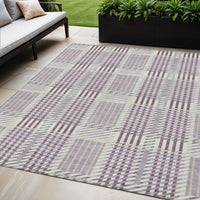 5' X 8' Lavender Ivory And Gray Plaid Washable Indoor Outdoor Area Rug