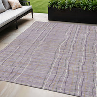 5' X 8' Lavender Ivory And Gray Striped Washable Indoor Outdoor Area Rug