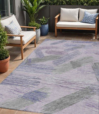 5' X 8' Lavender Lilac And Ivory Striped Washable Indoor Outdoor Area Rug