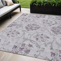 5' X 8' Lavender Purple And Gray Floral Washable Indoor Outdoor Area Rug