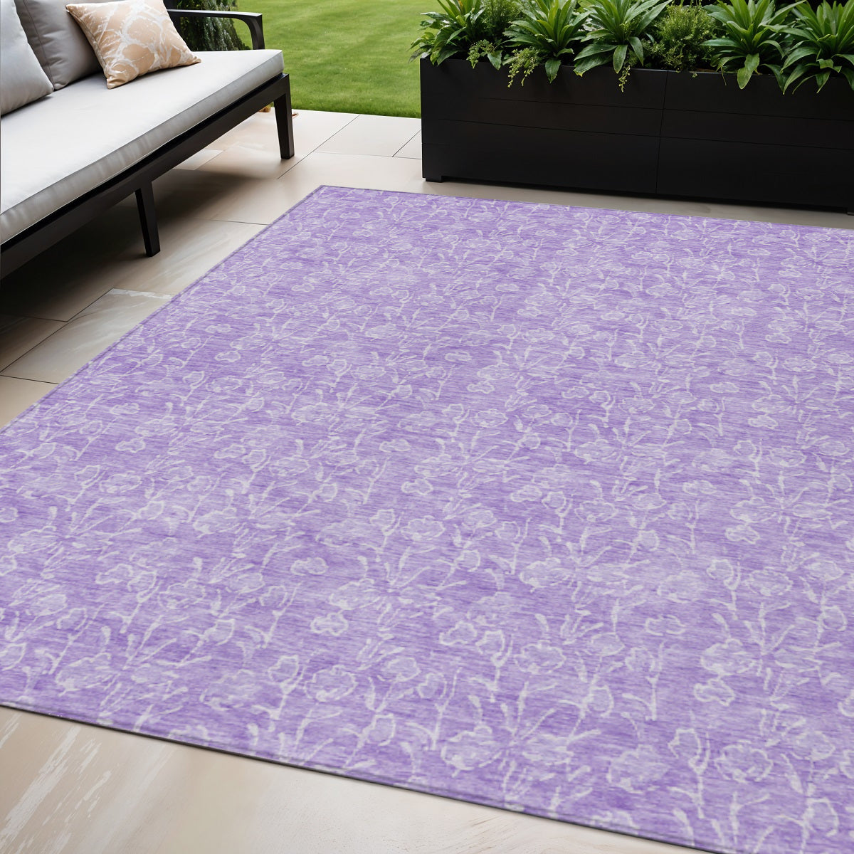 5' X 8' Lilac And Ivory Floral Washable Indoor Outdoor Area Rug