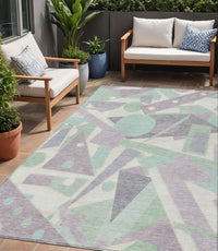 5' X 8' Lilac Lavender Mint Green And Ivory Geometric Washable Indoor Outdoor Area Rug