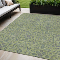 5' X 8' Lime Green And Gray Floral Washable Indoor Outdoor Area Rug