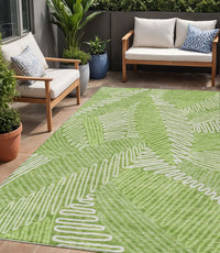 5' X 8' Lime Green And Ivory Floral Washable Indoor Outdoor Area Rug