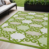 5' X 8' Lime Green And Ivory Trellis Washable Indoor Outdoor Area Rug