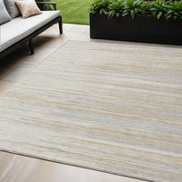 5' X 8' Linen Gray And Beige Striped Washable Indoor Outdoor Area Rug