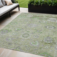 5' X 8' Mint Green And Gray Floral Washable Indoor Outdoor Area Rug