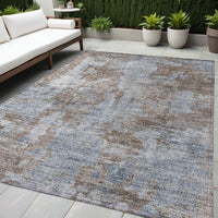 5' X 8' Mocha And Blue Abstract Washable Non Skid Indoor Outdoor Area Rug