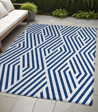 5' X 8' Navy And White Geometric Washable Non Skid Indoor Outdoor Area Rug