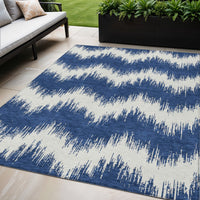 5' X 8' Navy Blue And Ivory Chevron Washable Indoor Outdoor Area Rug