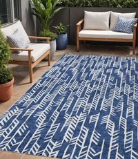 5' X 8' Navy Blue And Ivory Tribal Washable Indoor Outdoor Area Rug