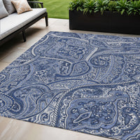 5' X 8' Navy Blue And Sky Blue Paisley Washable Indoor Outdoor Area Rug