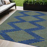 5' X 8' Navy Blue And Yellow Geometric Washable Indoor Outdoor Area Rug