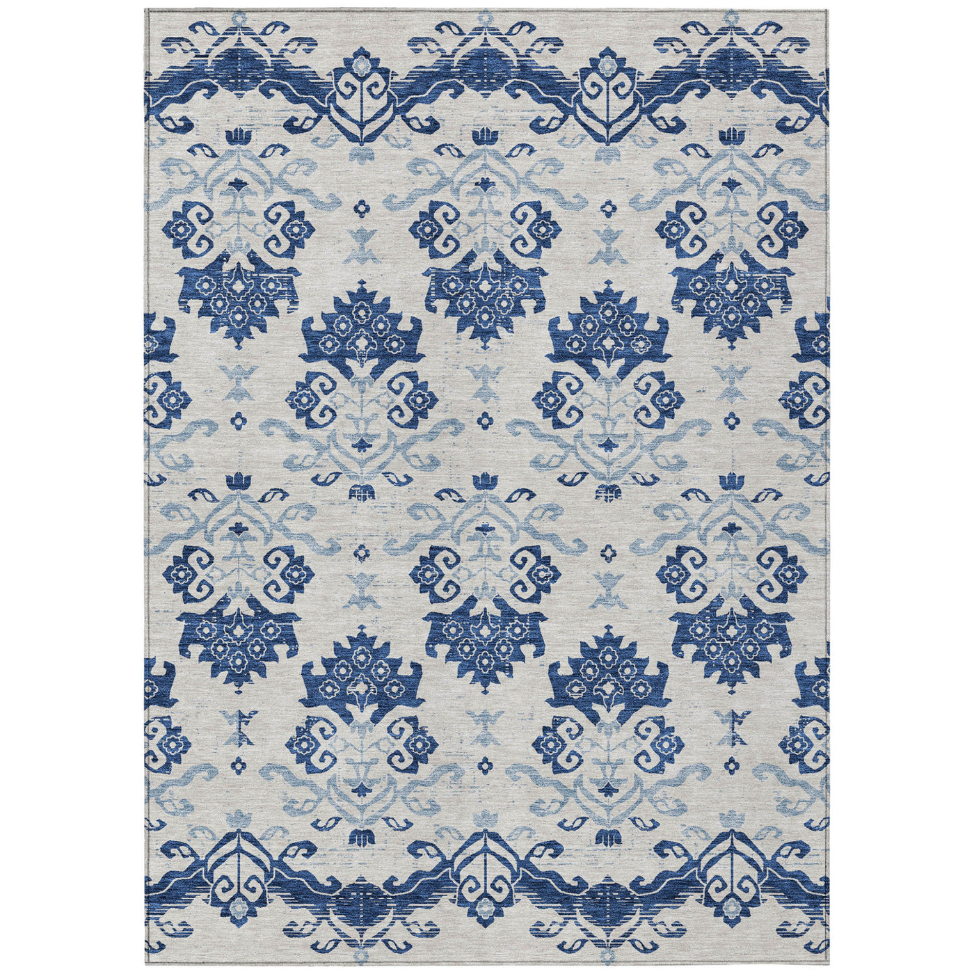 5' X 8' Navy Blue Beige And Denim Blue Oriental Washable Indoor Outdoor Area Rug