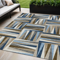 5' X 8' Navy Blue Brown And Beige Geometric Washable Indoor Outdoor Area Rug