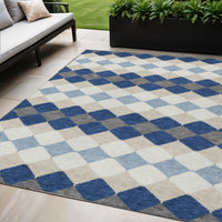 5' X 8' Navy Blue Ivory And Beige Geometric Washable Indoor Outdoor Area Rug