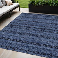 5' X 8' Navy Blue Southwestern Washable Indoor Outdoor Area Rug