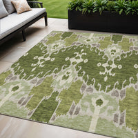 5' X 8' Olive Green And Artichoke Green Ikat Washable Indoor Outdoor Area Rug
