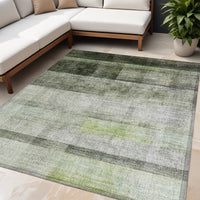 5' X 8' Olive Green Ombre Washable Non Skid Indoor Outdoor Area Rug