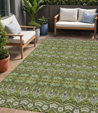 5' X 8' Olive Green Purple And Ivory Moroccan Washable Indoor Outdoor Area Rug