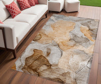 5' X 8' Orange Abstract Washable Non Skid Indoor Outdoor Area Rug