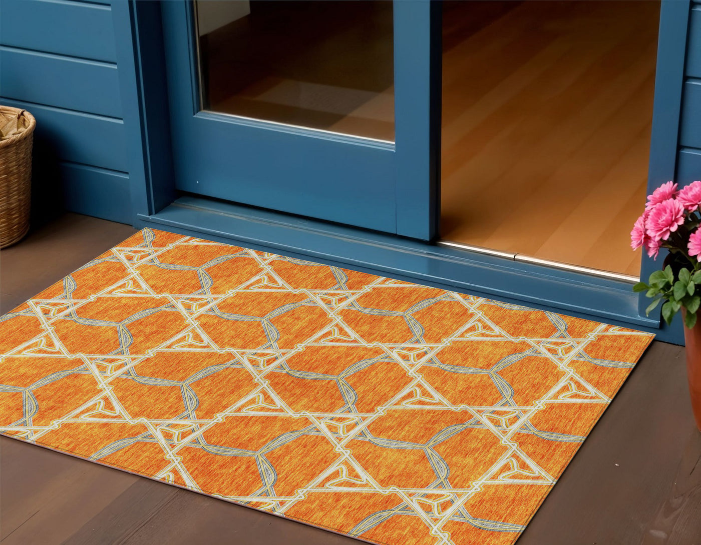 5' X 8' Orange And Blue Geometric Washable Indoor Outdoor Area Rug