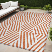 5' X 8' Orange And White Geometric Washable Non Skid Indoor Outdoor Area Rug