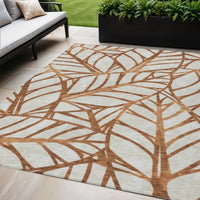 5' X 8' Orange Beige And Copper Floral Washable Indoor Outdoor Area Rug